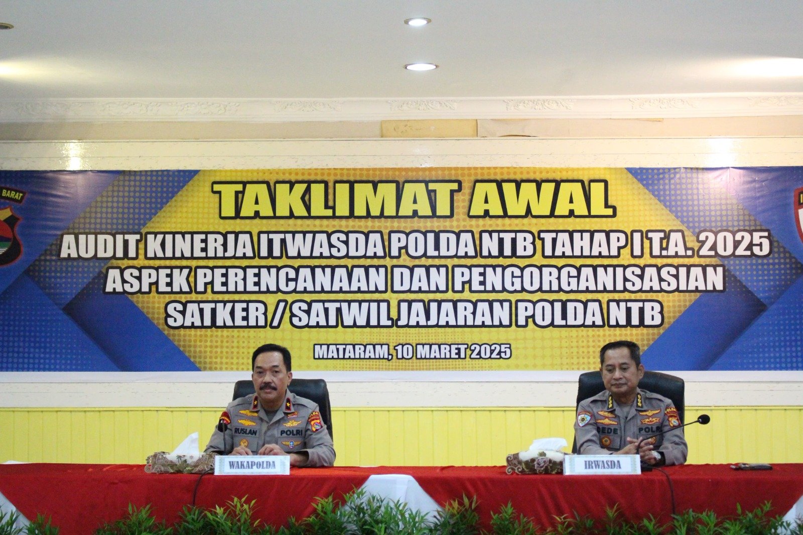 Kegiatan ini dibuka langsung Wakapolda NTB dan turut dihadiri Irwasda Polda NTB, Pejabat Utama (PJU) Polda NTB, para Kapolres/ta jajaran Polda NTB, serta Kasubbag Renmin Satker Polda NTB. Acara berlangsung di Ruang Presisi Polda NTB, Senin (10/3/2025) pukul 09.00 WITA hingga selesai.
