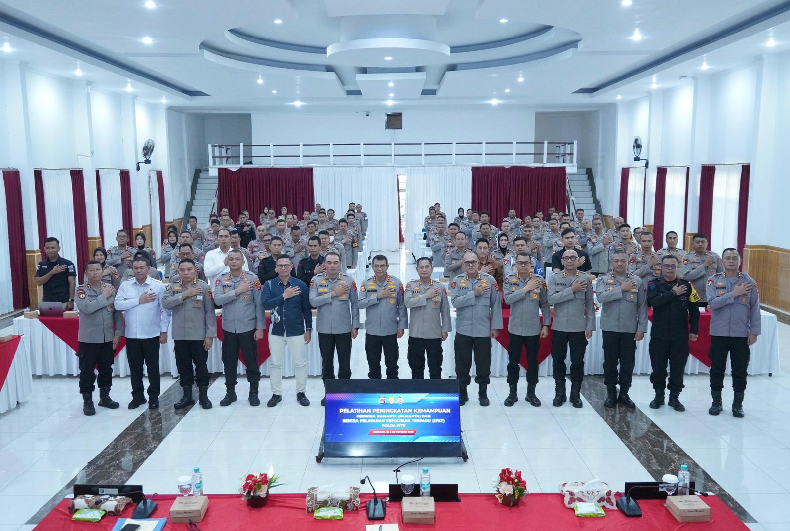 Dengan mengucap Basmalah, Kapolda NTB resmi membuka kegiatan pelatihan tersebut, yang turut dihadiri Wakapolda NTB, Irwasda, serta para pejabat utama (PJU) Polda NTB.